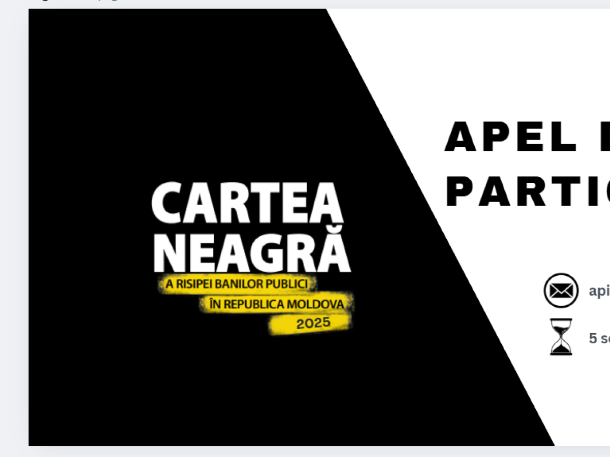 Pentru elaborarea ediției anului 2025 a „Cărții Negre a risipei banilor publici în Republica Moldova” API invită jurnaliștii de investigație din mass-media națională și locală care au o idee de investigație ce vizează:
