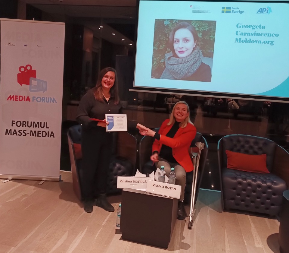 Georgeta Carasiucenco, Moldova.org, pentru articolele „Cum să fii un tată mai bun din pușcărie” și „Cum un angajat al preturii Botanica ar fi ar fi abuzat 3 voluntare”.