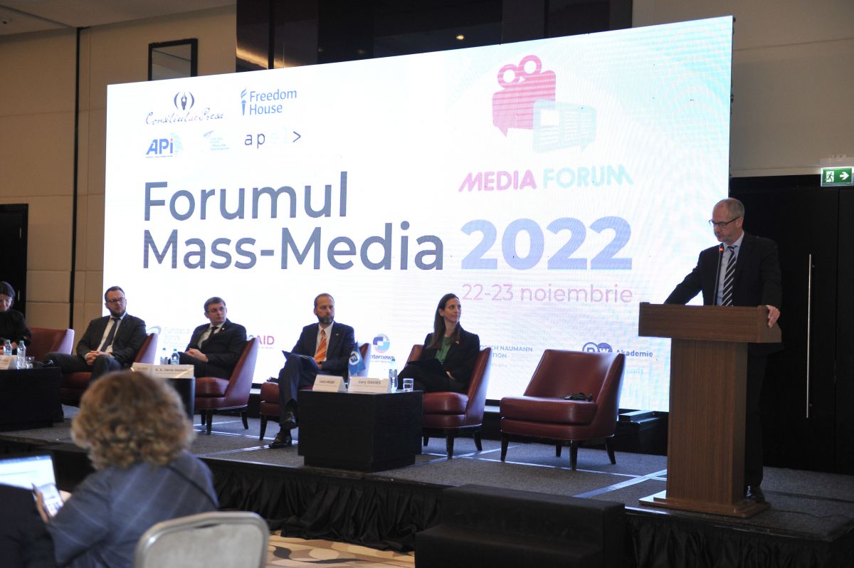 La 22 și 23 noiembrie 2022 s-a desfășurat a șaptea ediție a Forumului Mass-Media din Republica Moldova – cel mai reprezentativ eveniment al comunității jurnalistice moldovenești. La dezbaterile, atelierele, activitățile de networking din cele două zile ale Forumului au participat circa 150 de jurnaliști, editori, manageri media, dar și reprezentanți ai instituțiilor publice, autorităților de reglementare, experți din țară și de peste hotare. Forumul Mass-Media este convocat anual de Consiliul de Presă, în parteneriat cu Asociaţia Presei Independente (API), Centrul pentru Jurnalism Independent (CJI) și Asociaţia Presei Electronice (APEL). Ediția 2022 a fost organizată în parteneriat cu Freedom House.
