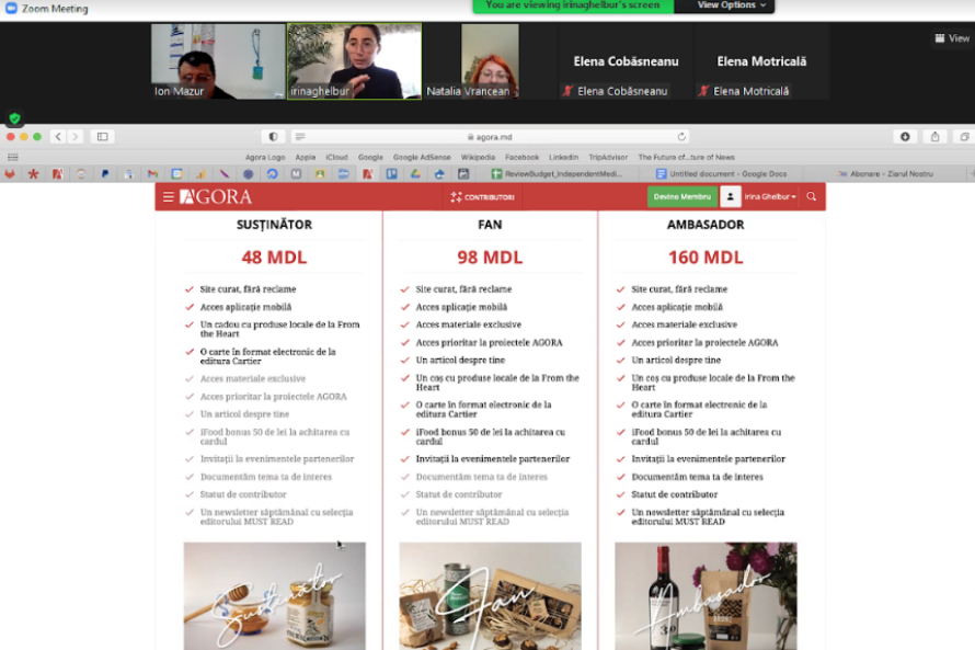 În partea a doua a webinarului, I. Ghelbur le-a arătat participanților cum se completeze fișierele de evidență financiară. Beneficiarii au rămas mulțumiți de utilitatea practică a acestei instruiri. „Noi cunoaștem în linii generale care sunt veniturile și costurile redacției, dar această informație o primim cu întârziere de la contabilă, în plus nu avem ceva sistemic de care să ne conducem. Ceea ce propune Irina este mult mai util, chiar dacă la început trebuie să depunem un efort suplimentar pentru a pune pe roate un așa mecanism. Sunt sigură că așa va fi mult mai ușor să ținem situația sub control”, a menționat Elena Cobăsneanu de la Observatorul de Nord (Soroca). Iar Lilia Curchi de la revista Natura a adăugat: „Nu este o noutate că trebuie să urmărim indicatorii financiari, însă ceea ce a propus Irina este mult mai bine structurat, asta permite să evităm unele riscuri în activitatea noastră. Ne-am convins o dată în plus cât de important este să diversificăm tipurile de servicii care aduc venituri, mai ales în situația când costurile cresc în permanență”.